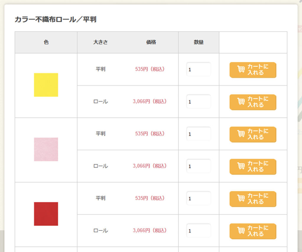 色や大きさなど種類がある商品は、選択ページが表示されますのでこちらで購入される商品を選びます。