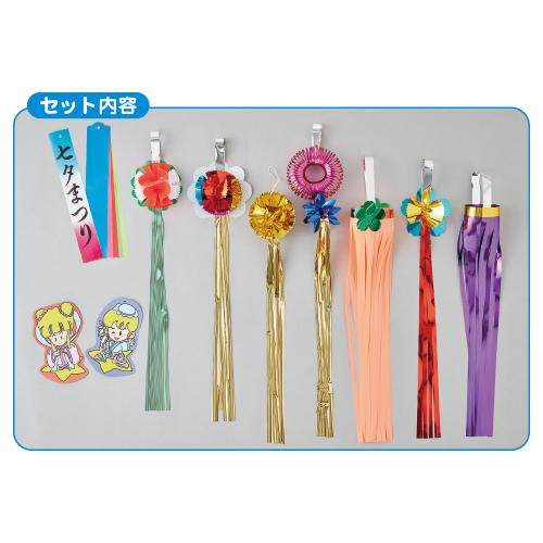 - 飾り7種類(色取混)、短冊(PVC)5枚、織姫・彦星各1枚