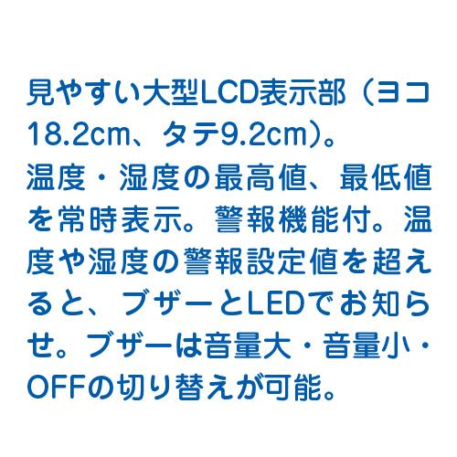 設定した温度・湿度の上限、下限を超えるとブザー音と光(LED)でお知らせ