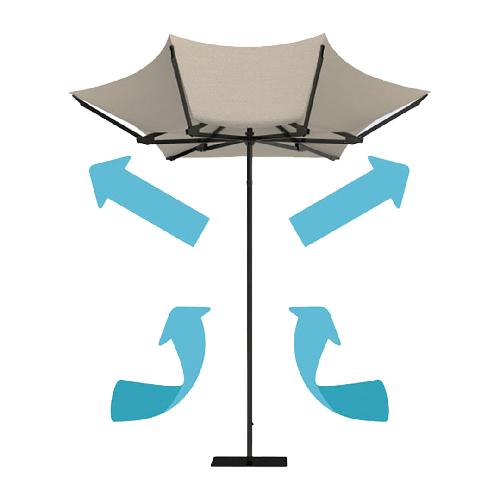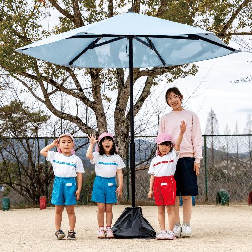 防炎生地を使用した、簡単に開閉ができるメッシュパラソルです。